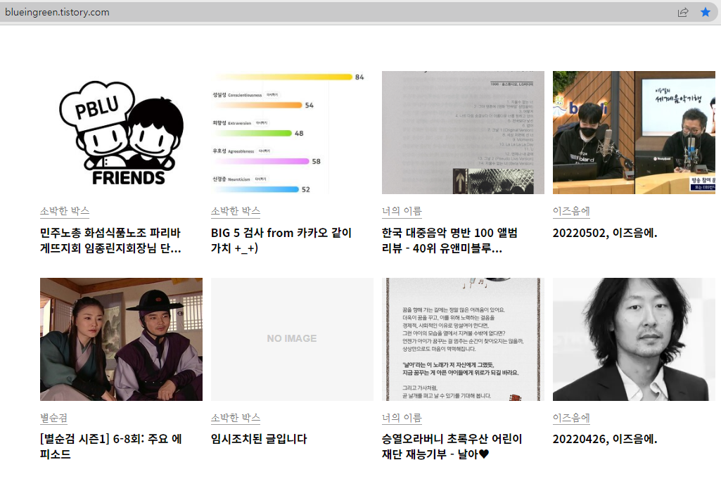 | BIG 5 검사 from 카카오 같이가치 +_+) (0) | 2022.05.07 |