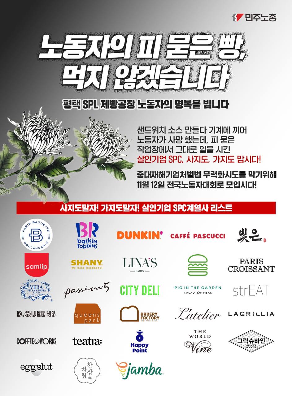 SPC 그룹이 인권을 보장하고, 노동법을 준수할 때까지 저는 SPC 제품을 사지 않겠습니다😡
