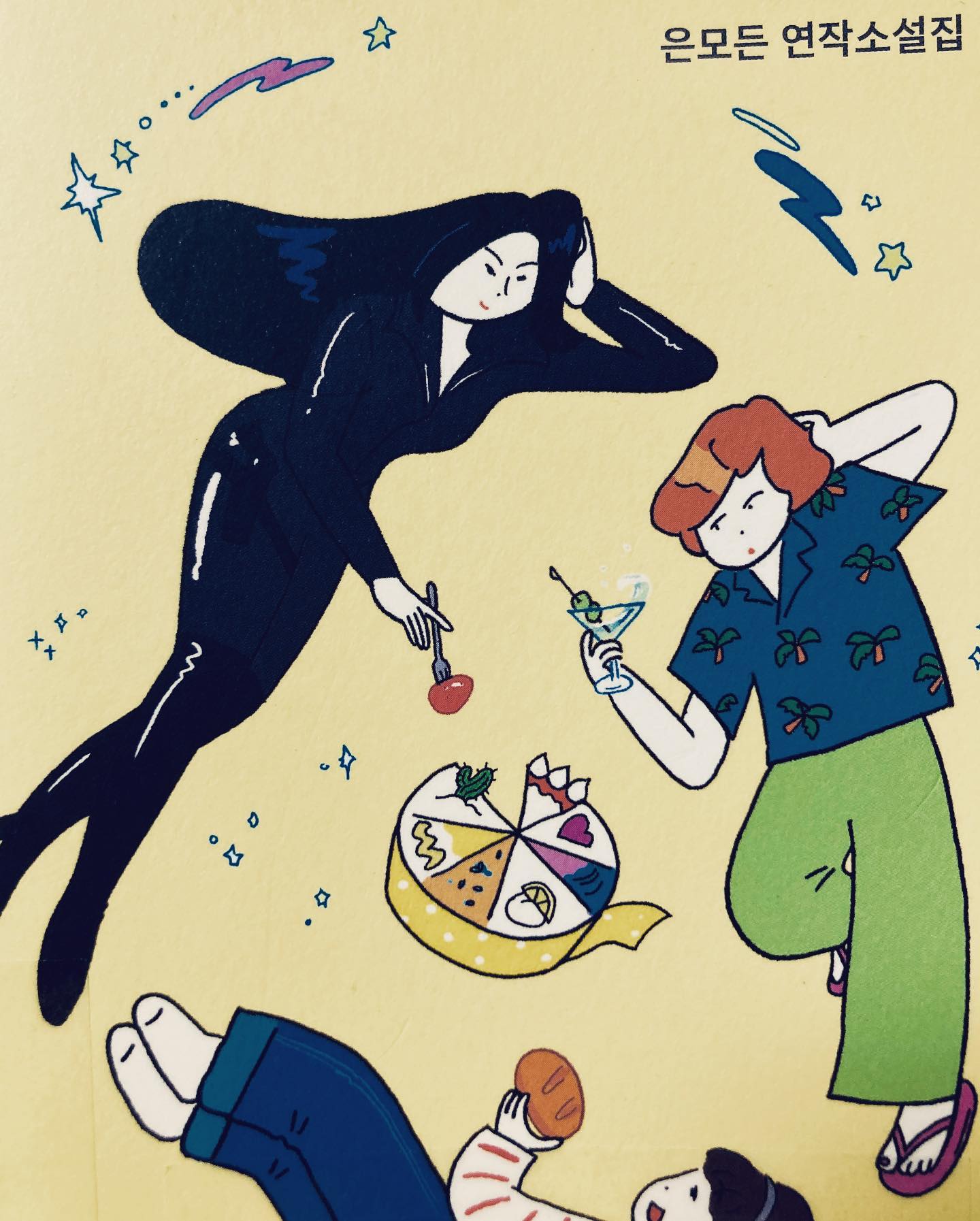 나만 해도, 소설을 읽으며 머릿속으로 상상했던 은하와 민주의 이미지가 표지에 있는 은하와 민주의 이미지와 분명히 달랐는데 출판사의 (과하게 친절한) 인물 소개 문구와 함께 표지를 다시 살펴본 이후에는 소설을 읽을 때 상상했던 은하와 민주의 이미지가 사라져버렸다. 내게 상상의 이미지란 직접 본 것보다 덜 생생한 것이라, 출판사에서 그려준 은하와 민주가 내 머릿속 은하와 민주를 덮어 버린 격. 게다가 성지는 소설을 읽는 내내 계속 다른 모습으로 상상했었는데...저 표지 속 성지는 그 중 하나밖에 안 되고 그 하나도 내가 상상한 것과는 다르다. 그런 점에서 아쉬운 표지다. 케이크 그림만 강조했어도 충분히 좋았을 것 같은데. 애니웨이.