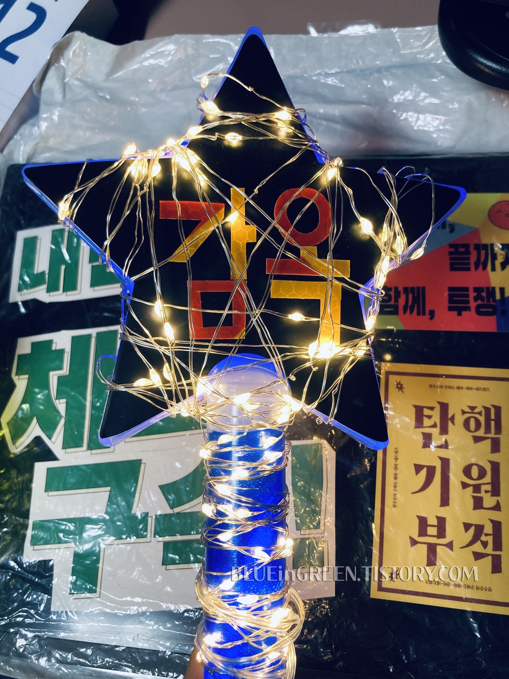 크리스마스 이브 집회날 야광봉을 망가뜨린 이후ㅠㅠ 빛나는 물체를 내손으로 만들어보고 싶어서 지난번에 포스팅한 대로 새해 첫날부터 돼지 한 마리와 와이어전구와 아크릴 LED 스탠드를 조립해 집회동반돼지친구를 만들었다. 한남동과 광화문 모두 함께 다녀왔고 그저께 행진도 함께 했다.