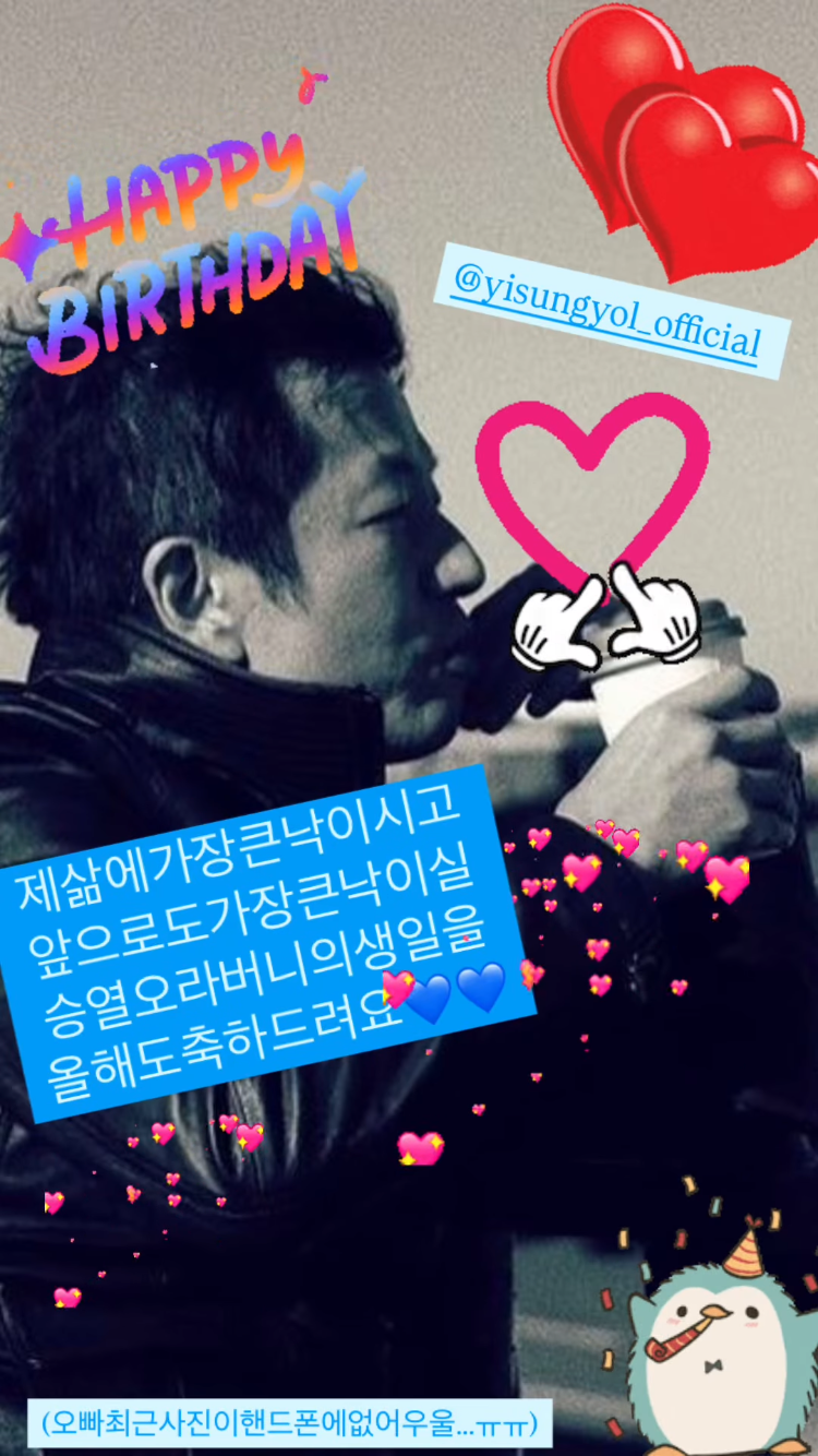 올해 생일도, 내년 생일도, 내후년 생일도 쭉 축하드릴 수 있기를. 오늘 하루 세상에서 가장 행복하시고, 앞으로의 날들도 세계에서 가장 평온하시길. 늘 감사합니다 승열오라버니. 앞으로도 쭉 감사드려요. 이승열이즈마이플레저🫶🫶🫶🫶🫶🫶🫶