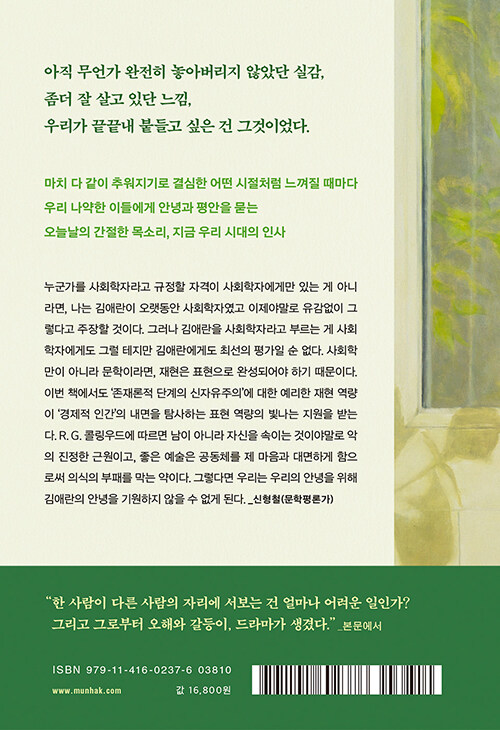 '매일 편의점에 가'던 청춘들은 월세인지 전세인지 자가인지의 여부로 타인을 평가하는 중년이 됐다. 안녕이라 그랬어를 책장에서 꺼내어, 풍요로운 부에서 비롯하는 귀족적 무구함과 순진함을 지니지 '못한' 인물이 자신의 계급에 대한 열등감을 떨치지 못하면서도 이를 자각할 수 없게 만드는 허영의 순간들을 계속적으로 욕망하거나 실현한 뒤 만족 대신 초라함과 허탈감을 마주하게 되는 이야기들...을 읽으며, 나는 박완서선생님을 떠올리기도 했다. 지금처럼 김애란작가님이 성실히 꾸준히 훌륭한 책을 계속 써주신다면, 나보다 젊은 독자들이 김애란작가님의 이름을 박완서선생님과 같이 기억할 날이 분명 있지 않을까. 읽는 내내 어쩌면 이렇게 잘쓰지, 어쩌면 이렇게 훌륭하지, 하며 작가님에 대한 존경심이 무한히 커지는 기분을 느꼈던 책이 올해의 내게는 안녕이라 그랬어였다.