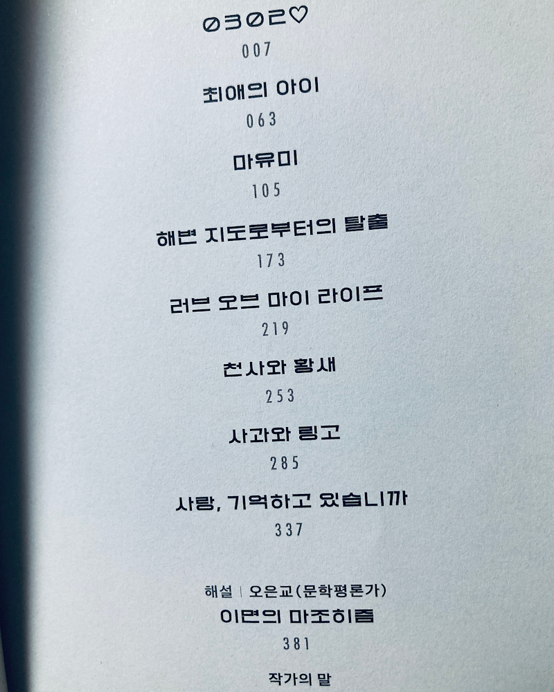 소설집을 하루에 몰아 읽는 건 내게 쉬운 일이 아니다. 보통 다양한 소설이 묶여 있으니까, 몇 편 읽다 보면 '아 좀 쉬고 읽자'라는 생각이 든다. 근데 이 책은 하루만에 다 읽었다. 와 미쳤네...이 다음은 또 뭐야? 라는 생각을 멈출 수가 없었다. 수록작 전체를 쉬지 않고 쫙 읽었다. 이미 읽은 최애의 아이와 사과와 링고도 처음 읽었을 때보다 더 재미있게 읽었다. 나머지 여섯 편도 다 재미있었다. 이렇게 전체 소설이 다 재미있는 소설집도 많지 않은데 말이죠.