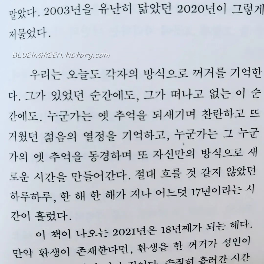 그에 대해서는 여전히 잘 모를지라도, 그냥 안다고 믿는 것뿐이더라도, 그를 통해 또 그에 대한 덕질을 통해 스스로에 대한 이해가 깊어질 수 있다면, 충분히 의미 있는 것 아닐까. 그가 떠난 후에도 그를 찾아다니고 그리워하는 마음까지도, 소중하고 아름다운 것 아닐까.