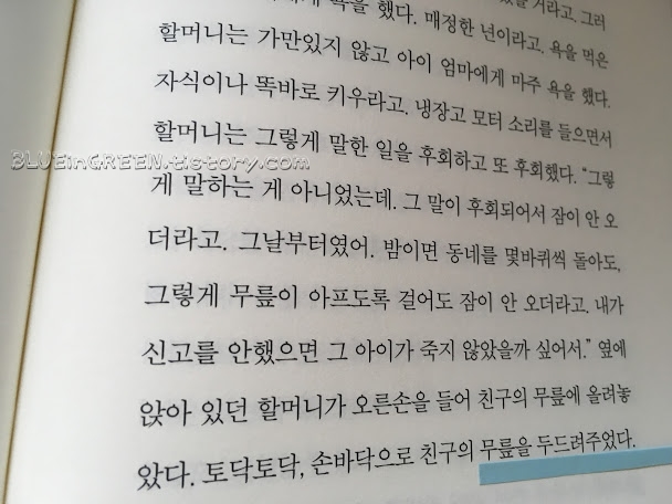 더 나중에야 알았다. 그런 사람으로 더 살 수 없는 때가 반드시 온다는 걸. 내가 갖고 있던 내 모습에 만족해서 이대로만 살면 괜찮겠지 하고 생각하는 것은 오만이고 자기 합리화에 불과하다는 걸. 나를 둘러싼 세상이 바뀌고 나를 구성하는 상황과 맥락이 바뀌면, 나는 그에 맞는 역할을 할 수 있는 사람이어야 한다는 걸. 나 혼자만 잘 살고, 내 가족과만 잘 살고, 나 친한 사람과만 잘 사는 인간으로는 이 세상에 별 가치가 없다는 걸. 그리고 그 가치 없는 인간들 때문에, 내가 소중하게 여기는 내가 죽은 후에도 고통스러운 삶을 살 수 있을 거라는 걸. 그러니까 그렇게 살지 않으려고 노력해야 한다는 걸.