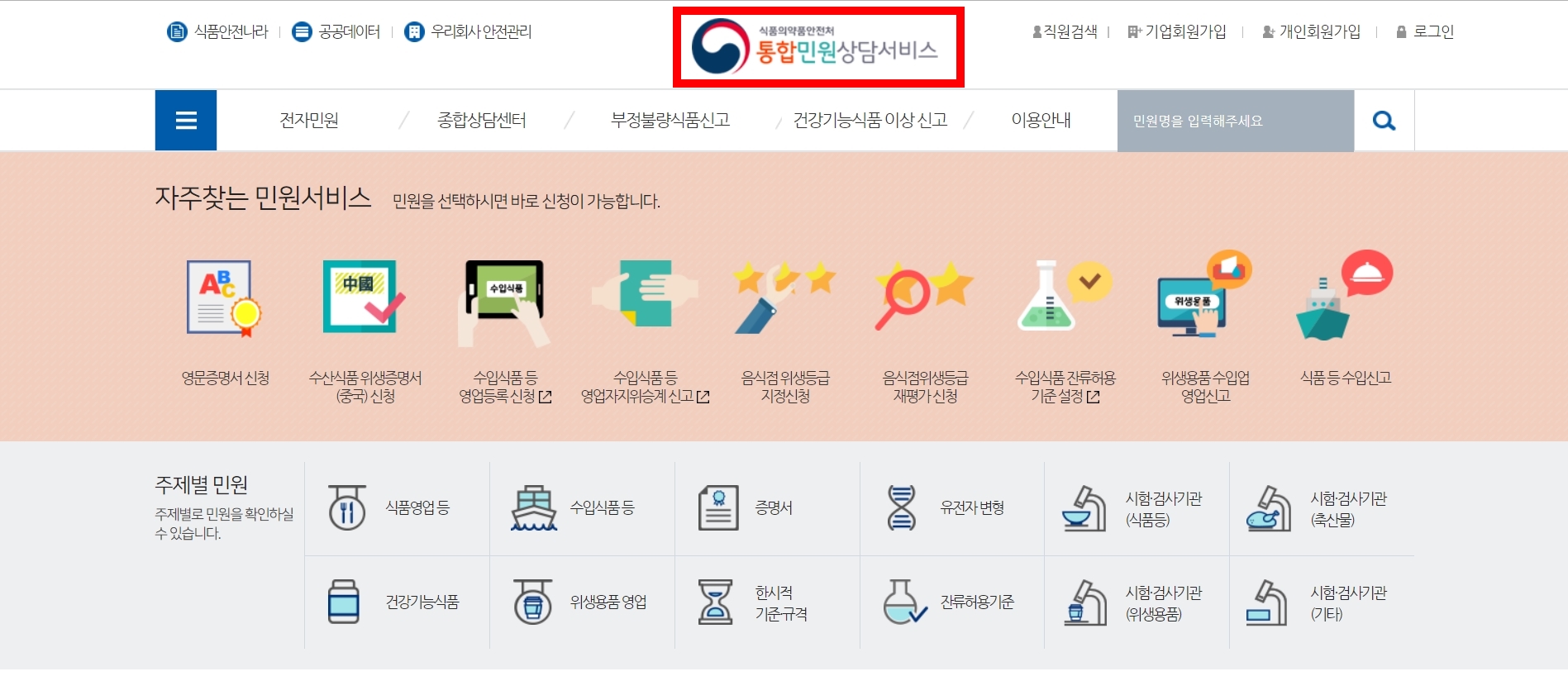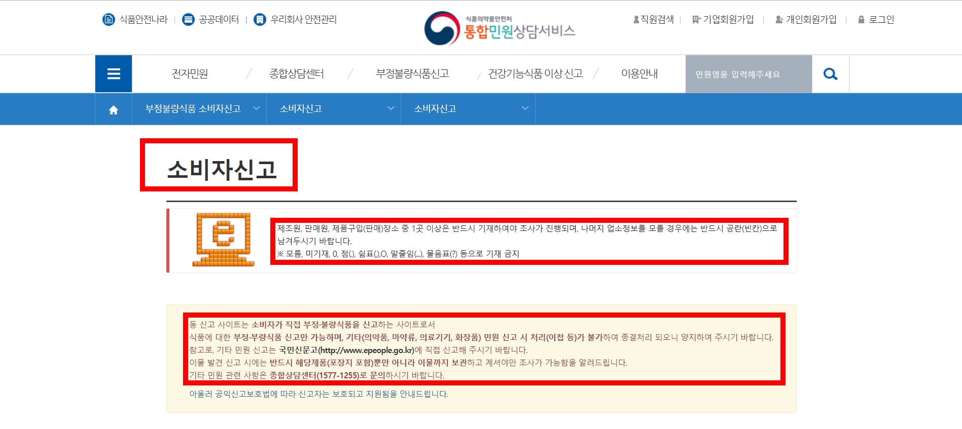 따라서 불량식품 그러니까 정확히 식품 내 이물 신고를 하기 위해서는 여기가 아닌 민원사이트로 접속해야 함. 민원사이트의 이름은 "식품의약품안전처 통합민원상담서비스"이고 링크는 "여기".