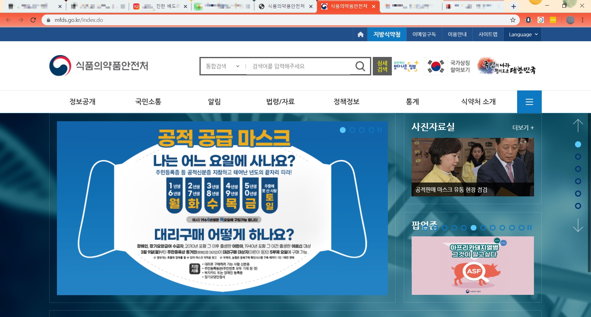 신고를 하려고 검색하면서 제일 먼저 알게 된 것은 식약청이 아니라 식약처라고 불러야 한다는 것(깜놀). 예전 이름은 식품의약품안전청이었는데 2013년인가에 식품의약품안전처로 이름이 바뀌었다고 한다 세상에…지금이 2020년인데 전혀 몰랐어…그래서 정확한 이름은 '식약청'이 아니라 '식약처'라는 것. 어쨌거나 지금 식약처 사이트에 들어가면 코로나로 인한 마스크 관련 페이지가 먼저 뜨고 링크를 찾아 식약처 사이트로 들어가면 민원을 넣을 수 있는 링크를 찾을 수가 없닼ㅋㅋㅋㅋㅋㅋㅋㅋㅋㅋㅋㅋㅋㅋㅋ