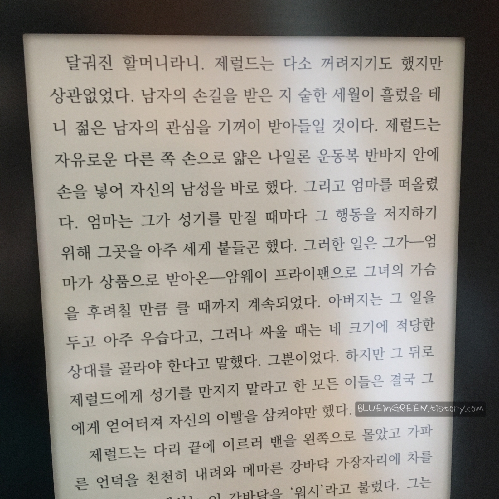 SD카드를 삽입하기 위해 크레타G를 거의 한달만에 케이스에서 꺼내봄. 2주 정도 초기비닐을 계속 붙이고 있다가 실수로 일부가 떼어져서 먼지가 왕창 묻어버려가지고 그냥 다 떼었는데 화면이 훨씬 책읽기 좋은 느낌이어서 일찍 뗄걸 싶기도 했음. 액정보호용 필름을 붙여야 하나 생각하기도 했는데 필름을 붙이면 터치감이 나빠진다는 후기들이 있어 그냥 붙이지 않고 있다. 근데 손자국 너무 많이 남. 먼지도 엄청 많이 달라붙음ㅋㅋㅋㅋ