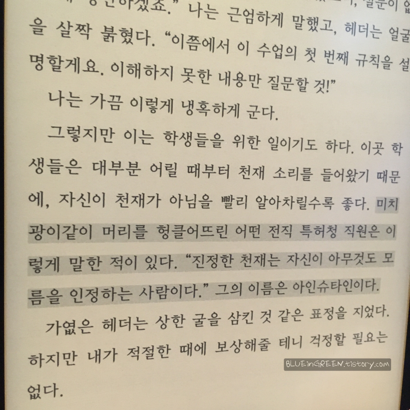인터넷에서 검색해보면 전자책 산 이후에 별 일 없어도 초기화를 한번 하는 게 좋다는데, 나는 양품테스트를 끝낸 후 초기화하지 않은 상태에서 바로 사용했다. 그러다가 최근에 외장메모리를 구입하면서 기념(-_-?)으로 초기화. 처음부터 설정을 다시 해야 해서 당연히 귀찮았지만 아무것도 모르던 처음 상태에서 마구잡이(-_-??)로 사용했던 흔적을 싹 지워버린 것 같아 왠지 속시원한 기분?
