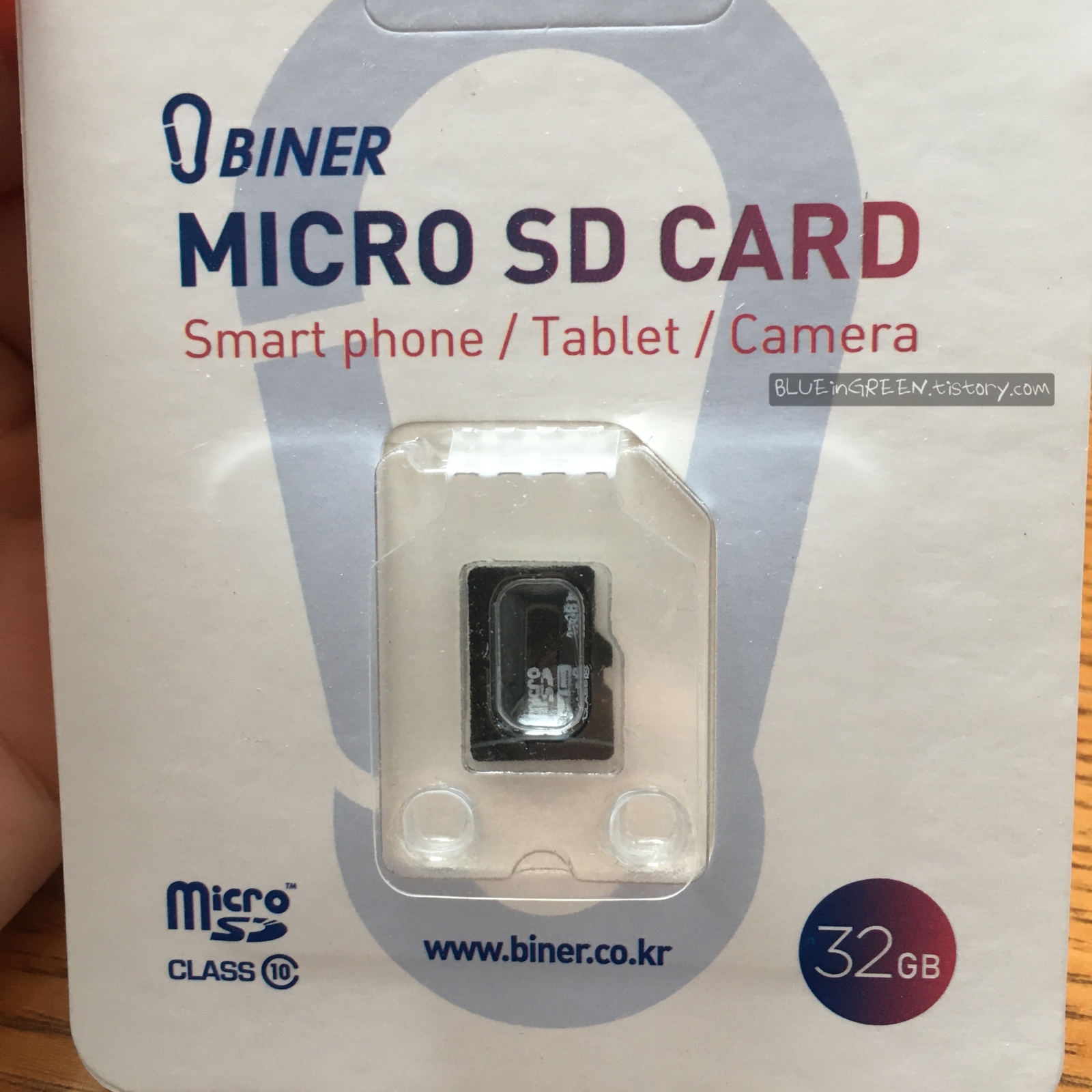 32기가짜리 마이크로SD로 샀다. 더 큰 용량을 살 수도 있었겠지만 그냥 귀찮아서 32G로. 특별히 좋은 걸 살 필요도 없는 것 같아 제일 저렴한 걸로 사버렸다. 티몬에서 1+1에 9,900원.