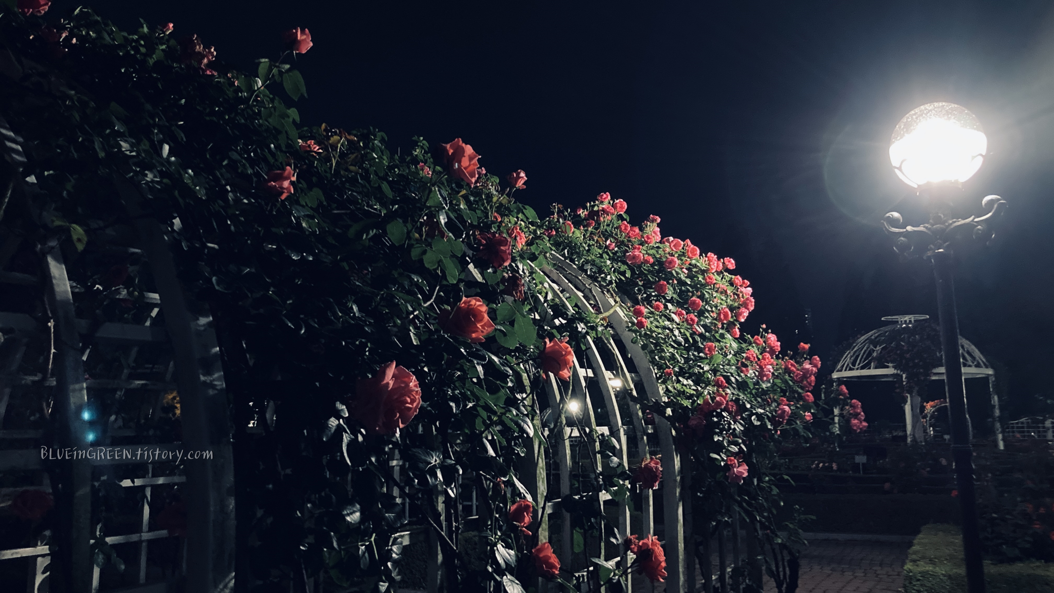 그리고 장미원 쪽으로 갔다. 평소에도 장미원 좋아하는 편인데 요즘은 특별히 좋아하고 있다. 사람 없는 밤에 장미원 가면 너무 좋다. 장미원 분위기가 기본적으로 아늑한 느낌이어서 그런지 여기 나밖에 없다-싶을 때면 마음이 엄청 편하다. 겨울밤에는 열시 넘어서 호수공원 가면 그런 적이 가끔 있었다. 요즘은 봄이라 그런지 밤에 가도 나밖에 없다-싶을 때는 없다만 ;)