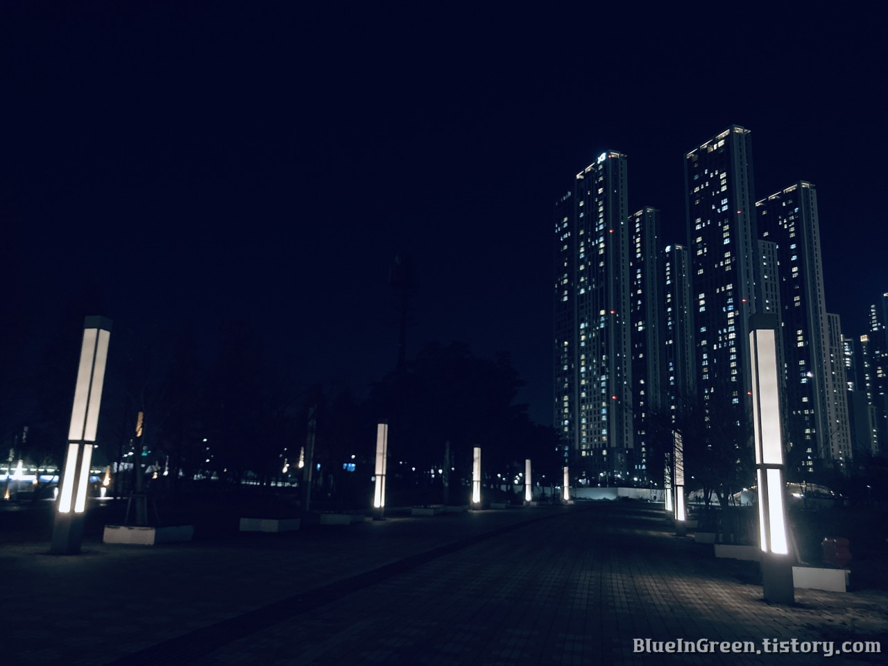 이날 호수공원을 산책한 다음 오랜만에 킨텍스 수변공원까지 걸었다. 저녁 일곱시가 좀 넘은 시간인데 이렇게 깜깜해진 걸 보면서 여름에는 일곱시쯤 오면 해가 졌던 것 같은데... 하고 생각했다. 그러고 보니 이날 많이 걸었네. 킨텍스 수변공원도 낮에 가보면 느낌이 많이 다를텐데 늘 밤에만 가본 것 같다. 올 겨울에는 낮에도 한번 가봐야지.