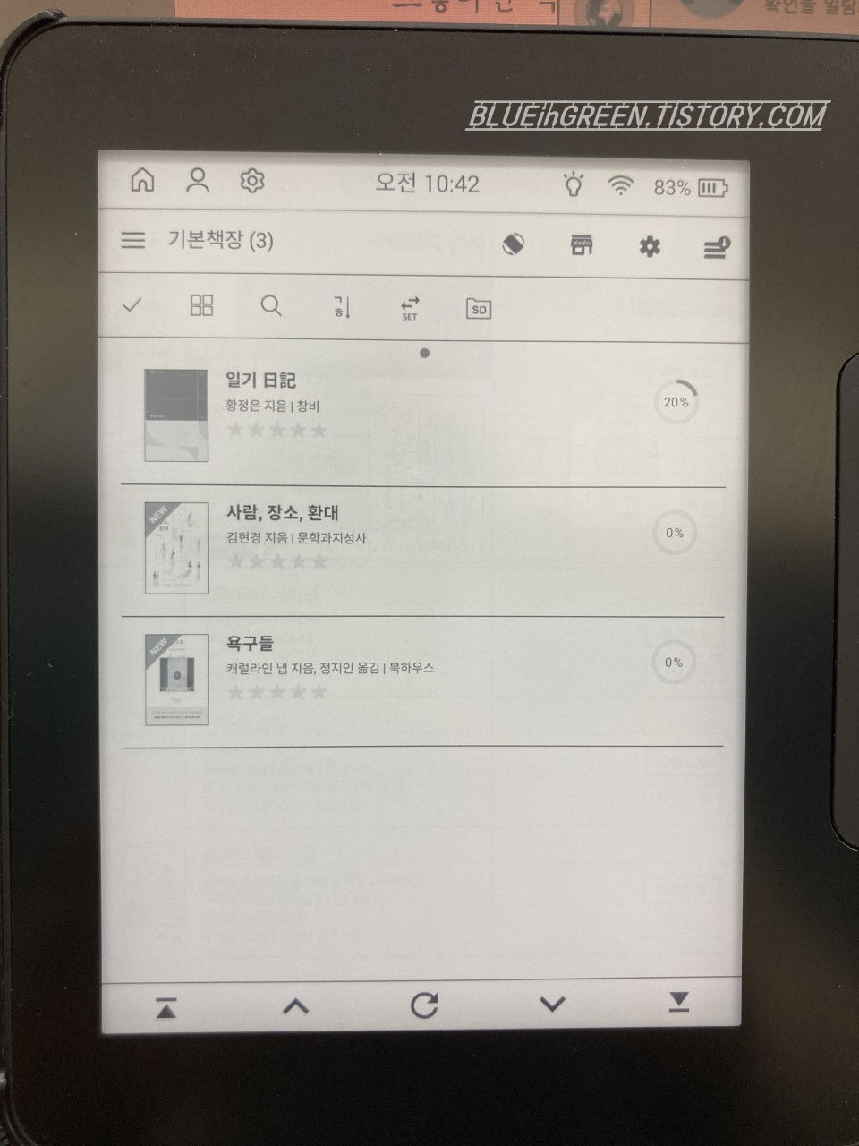 위의 사진에 설정되어 있는 것처럼 나는 늘 도서 저장 경로를 외부 저장소로 해뒀었다. 크레타G를 PC로 연결해 탐색기에서 확인해봐도 내가 저장한 책들은 모두 외부 저장소에 들어 있었다. 그렇기에 안심하고 초기화면에서 EBOOK을 클릭했는데……………………………아니 내 책들이 다 사라져 있는 것이다……………………………………어우 야 너ㅠㅠㅠㅠ 내부 저장소만 지운다고 했잖아ㅠㅠㅠㅠㅠㅠㅠㅠㅠㅠㅠ 왜 나한테 거짓말했어ㅠㅠㅠㅠㅠㅠㅠㅠㅠㅠㅠㅠㅠㅠㅠㅠㅠㅠ