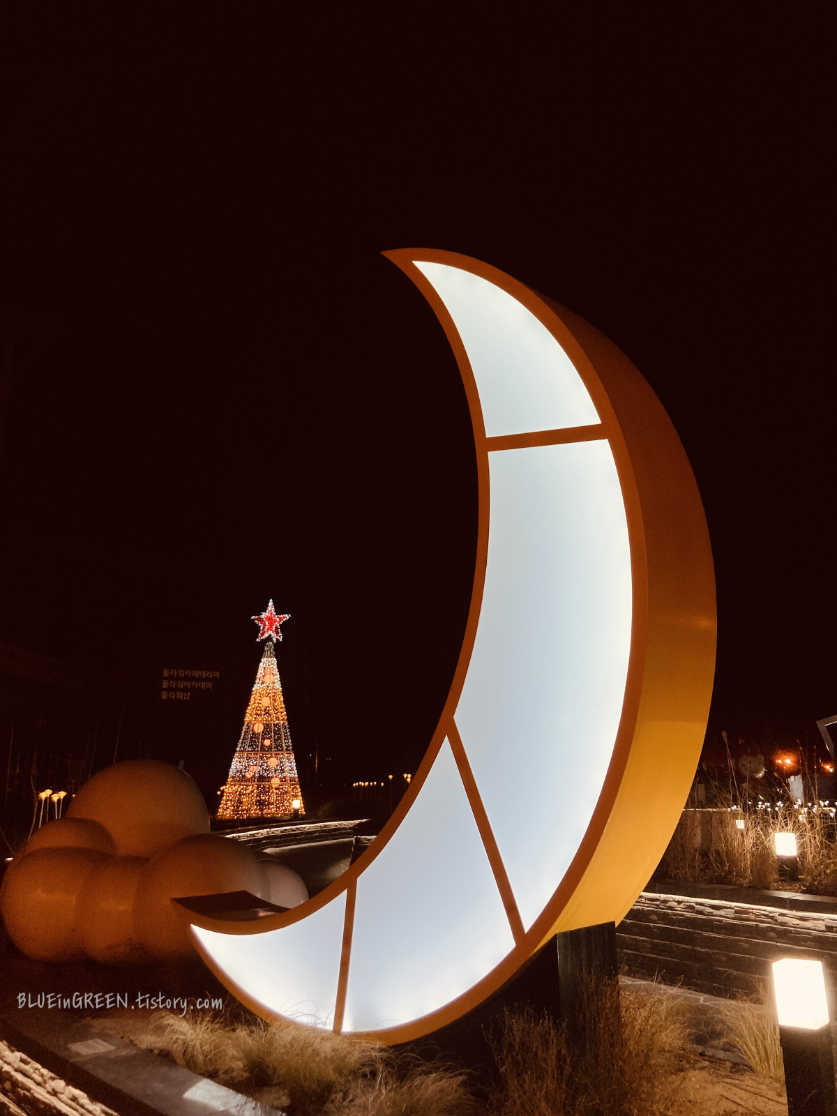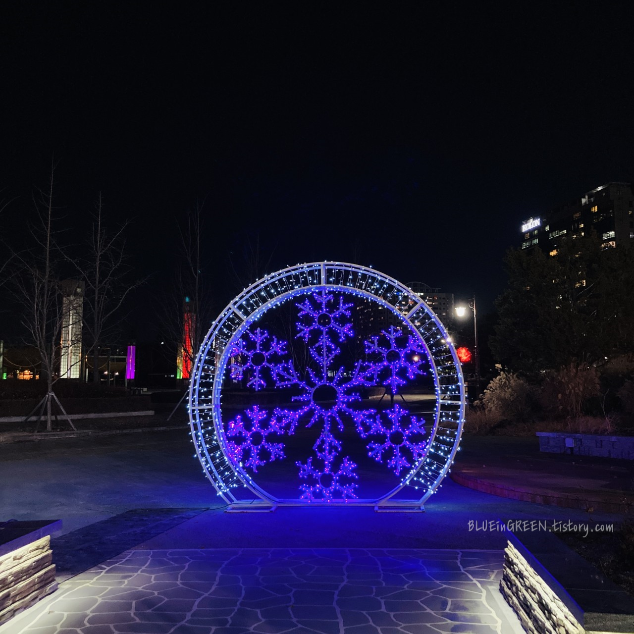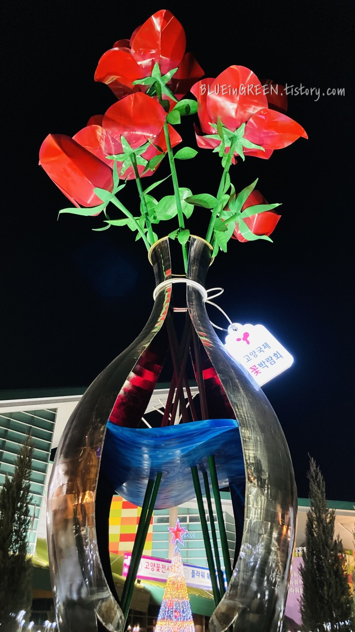 '산책해도 괜찮은 공기'를 마시며 퇴근 후 호수공원을 찾으면 한번씩 꽃전시관 앞에 멈추곤 했다. 대형 꽃병과 트리와 눈 모형 등등… 나야 '내 사진' 찍는 걸 싫어하는 사람이고 이 풍경을 자주 보기도 해서 셀카 같은 거 찍지 않았지만, 볼때마다 기념사진 찍기 너무 좋은 곳이군! 하는 생각이 들었다. 하늘이 맑아 별 같은 것이 보이는 날에는 '고양의 향기' 전시물쪽을 빙빙 돌다가 사진을 찍었다.